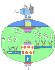 當系統(tǒng)處于過濾狀態(tài)時,未經(jīng)過濾的水通過上部的布水器,配合球形外殼,以接近平流的狀態(tài)到達過濾器內(nèi)的填料層。當水流過填料層時,雜質(zhì)被截留在填料層。過濾器底部的收集器將過濾后的水均勻地收集并流出。平流過濾,決定了過濾器在高的流速下,仍可達到良好的過濾效果。