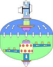 可以充分配合布水器,均勻布水,實現(xiàn)平流過濾;并配合集水器,反沖洗時形成內(nèi)環(huán)流,高效反洗不跑砂。 |