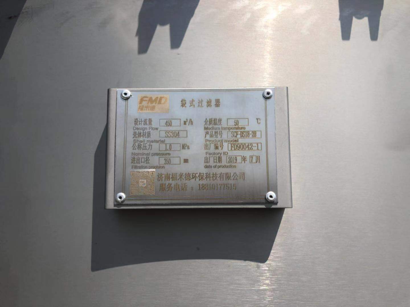 ? ? ?2019年7月,濟寧南水北調(diào)供水有限公司經(jīng)過多家對比,嚴格考察,最終選定與濟南福米德公司合作,簽訂20萬元合同,定制2套18袋袋式過濾器。