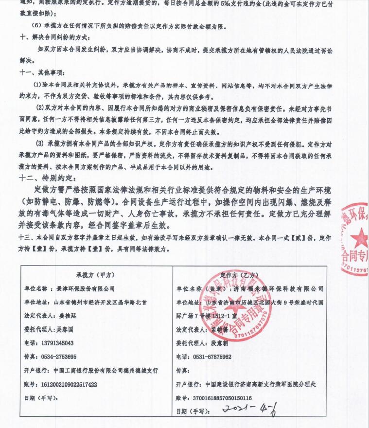 祝賀濟(jì)南福米德環(huán)保與景津環(huán)保簽訂合同,合作成功!